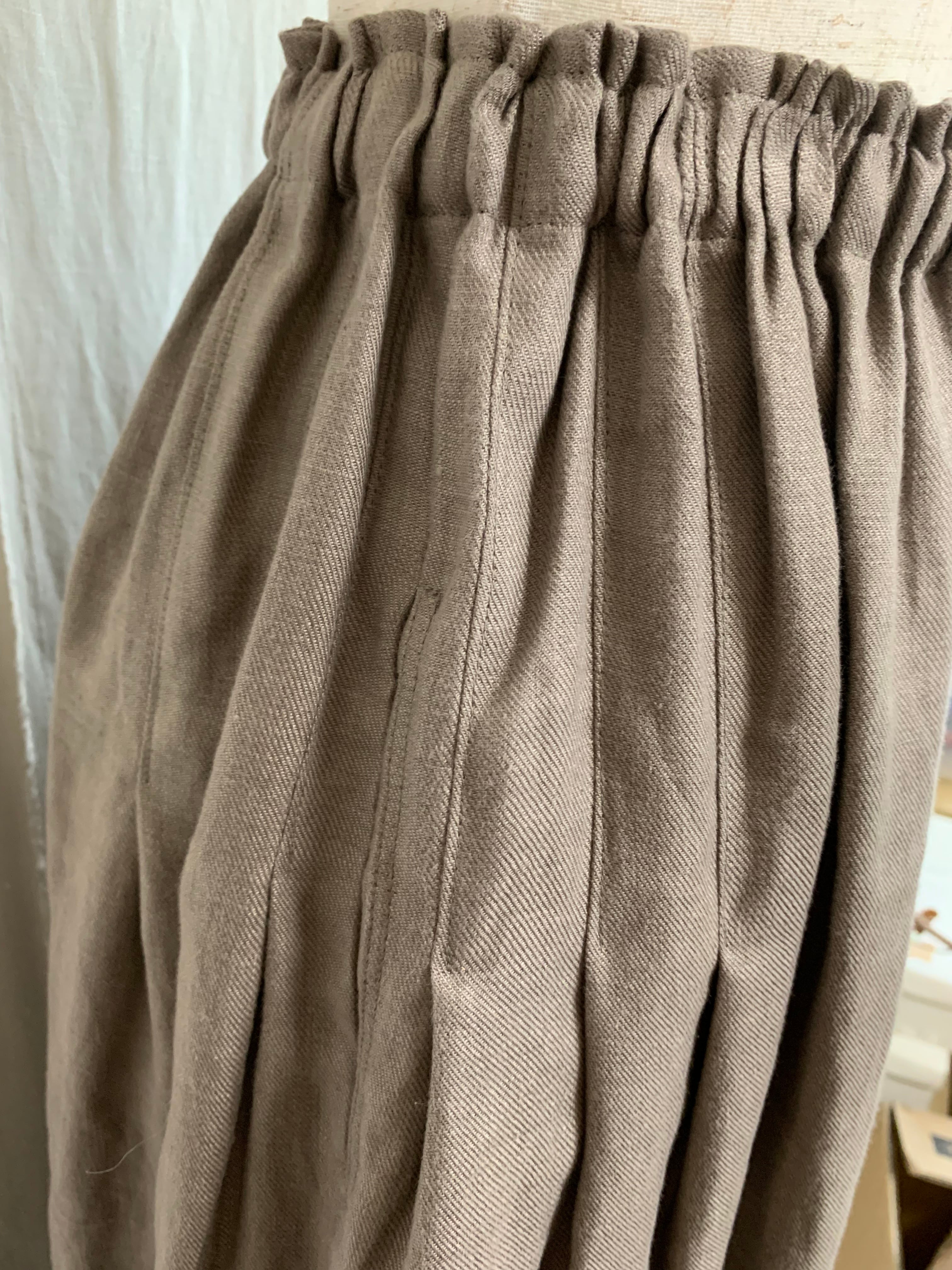 今回のリネンは綾織でトロンとした落ち感もあり、ギャザースカートの中で一番おススメの生地お仕立ていたしました。